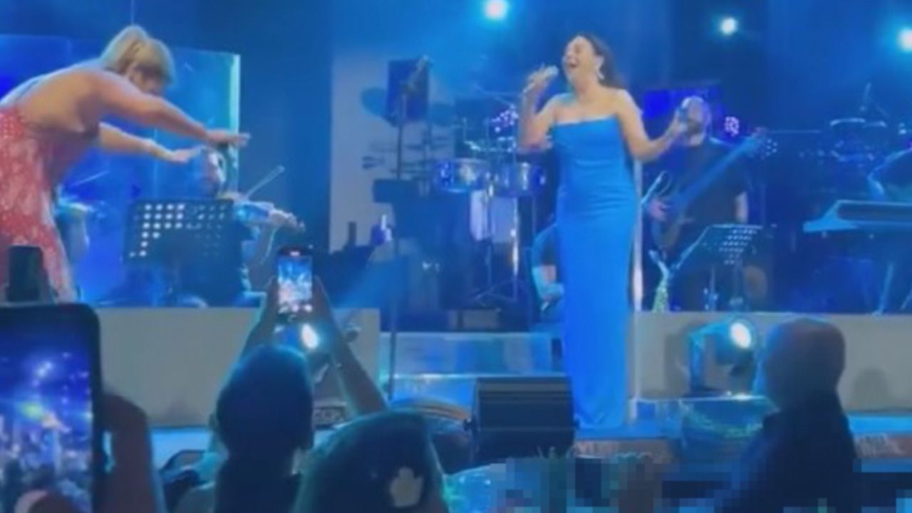Demet Akalın, dün akşam Bodrum'da konser veren arkadaşı Ebru Gündeş'in sahnesine konuk oldu. Demet Akalın, düet yaptığı Ebru Gündeş'in güçlü sesi karşısında mest olunca önünde saygıyla eğildi.