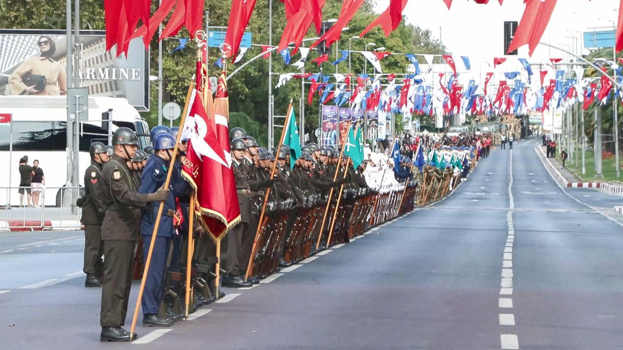 Türk Silahlı Kuvvetleri, jandarma, polisler törende yerini aldı. Prova çerçevesinde Türk Silahlı Kuvvetleri, jandarma ve emniyet teşkilatlarından askerler ve polisler, askeri araçlar ve polis araçları geçiş yaptı. Geçiş sırasında askerlerden oluşan bando takımı gösteri yaptı. Prova kapsamında İstiklal Marşı okundu ardından da saygı duruşunda bulunuldu. Halk oyunları ve zeybek ekibi de prova için alanda yerini aldı. Bazı vatandaşlar tören provasını ilgiyle izledi. Tören provasının bitiminde kapalı olan yolların açılması bekleniyor.