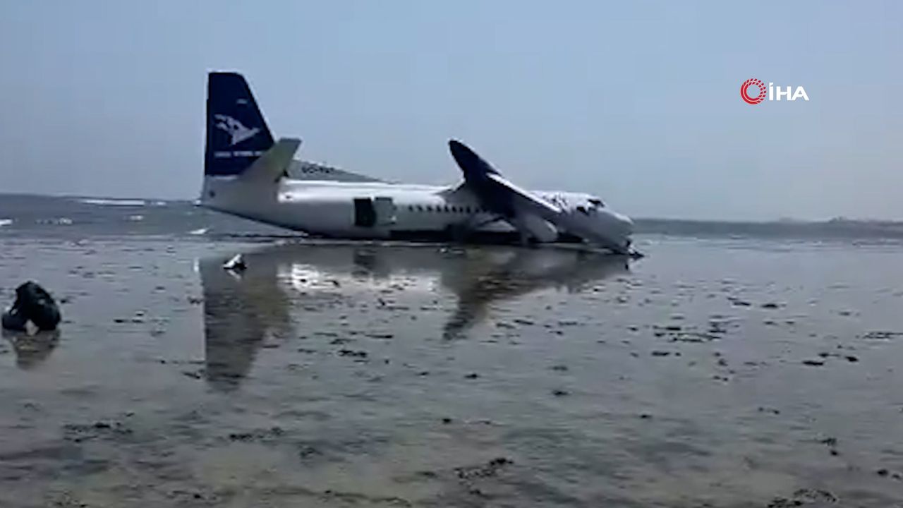 Somali'nin başkenti Mogadişu'da 55 kişiyle havalanan yolcu uçağı, kısa süre sonra denize acil iniş yaptı. Uçağın kanatlarından birinin koptuğu, can kaybı olmadığı belirtildi.