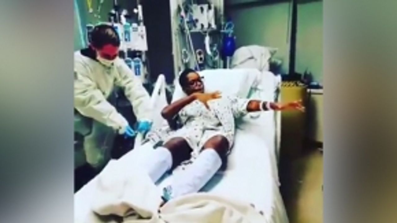 Başarılı geçen ameliyattan sonra mutluluklarını dans ederek gösteren hasta ve doktorlar izleyenleri güldürdü.