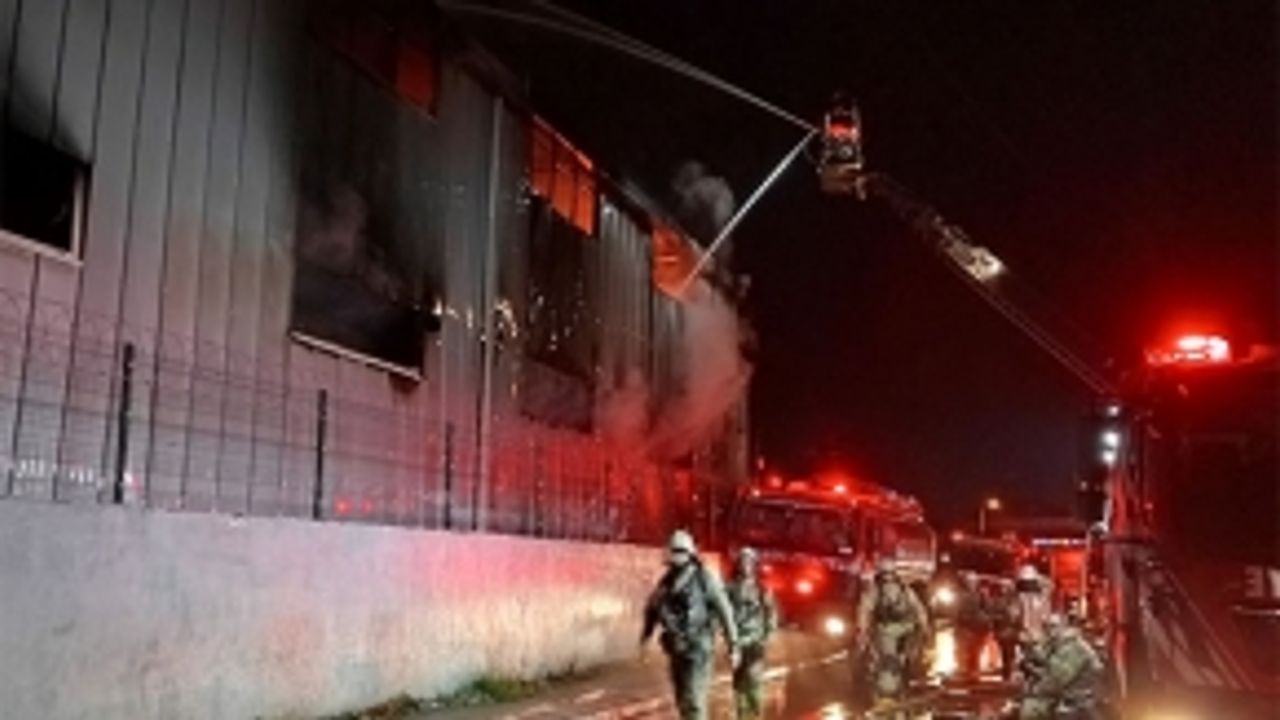 Yangından sıçrayan alevler fabrika bahçesinde park halinde...