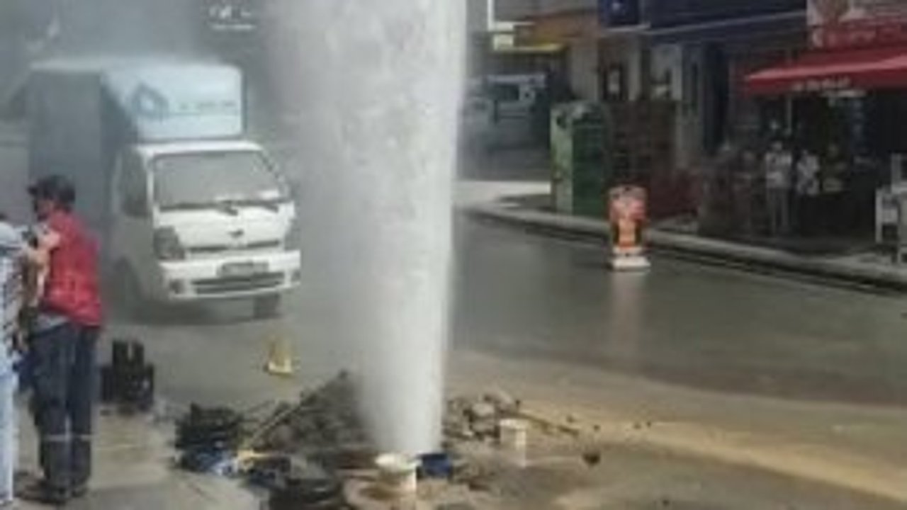 Ataşehir’de İstanbul Büyükşehir Belediyesi’ne bağlı İSKİ ekiplerinin çalışması sırasında su borusu patladı. Tazyikli suyun 5 katlı bir binanın yüksekliğine ulaştığı anlar kameraya yansıdı.