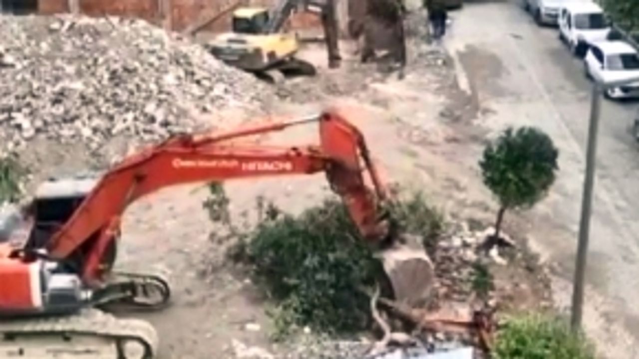 AVCILAR’da kentsel dönüşüm kapsamında yıktırılan binanın temel kazısı için görevlendirilen ekip, çalışma sırasında kaldırımdaki ağacı kepçe darbeleri ile devirdi. Görüntülerin sosyal medyada yayınlanması üzerine inşaat, belediye ekipleri tarafından mühürlendi.