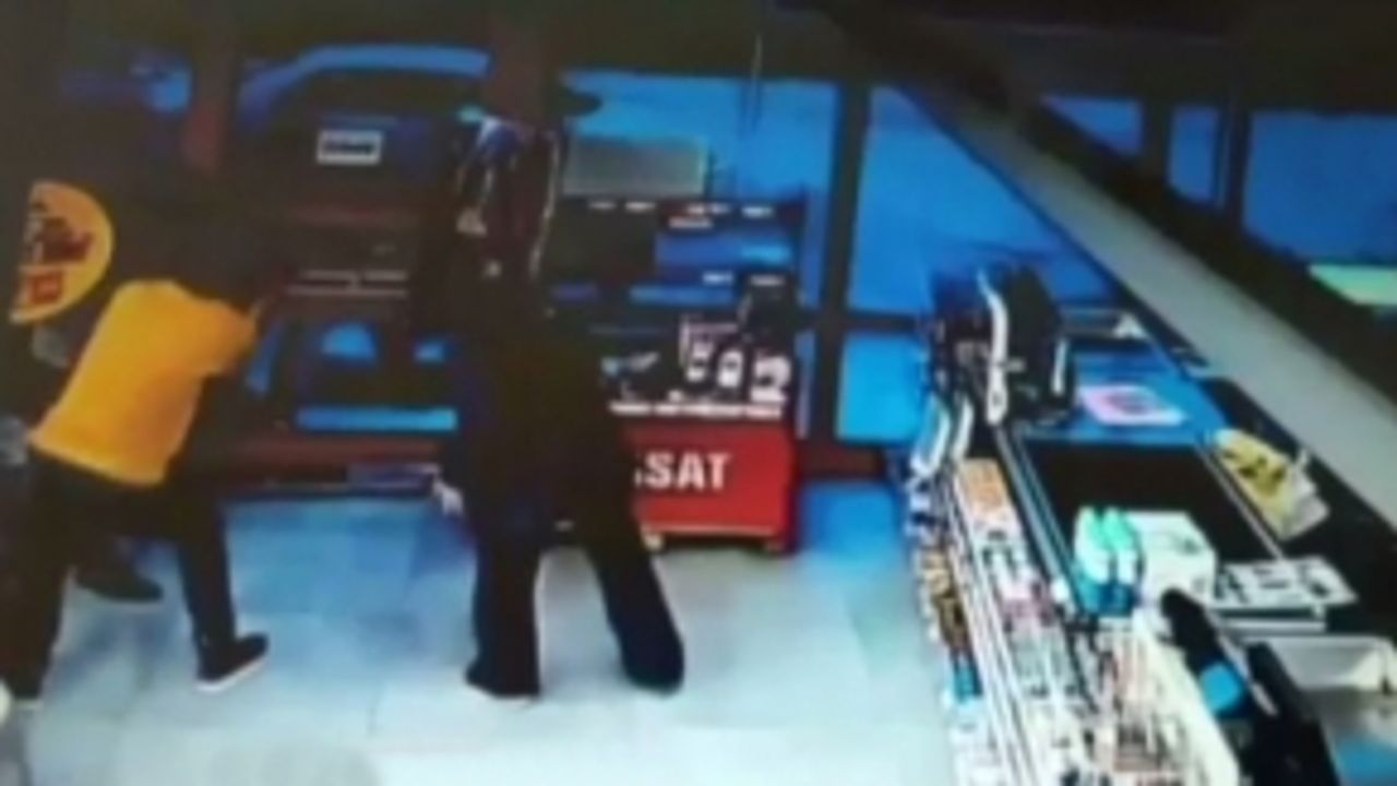 Kütahya’da elindeki bıçakla bir marketten bin 400 TL çalan soyguncu çalışanların müdahalesiyle karşılaştı. Markete kapatılan soyguncuyu olay yerine gelen polis ekibi gözaltına aldı.