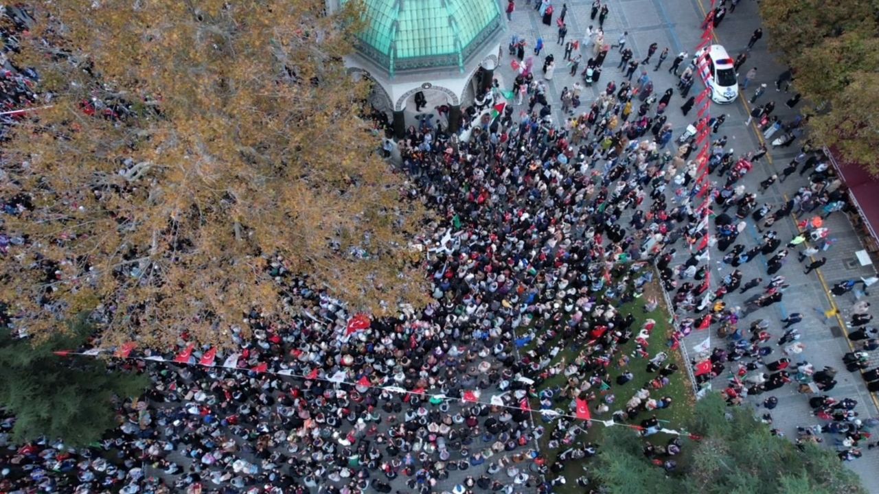 İsrail’in Filistin’e yaptığı saldırılara tepki göstermek için binlerce kişi Edirnekapı’dan Sultanahmet'e kadar yürüdü. Yürüyüş havadan görüntülendi.