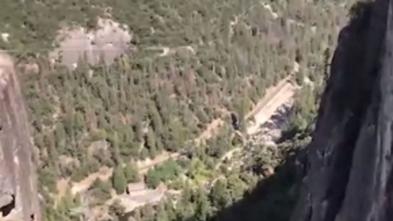 ABD'nin Kaliforniya eyaletinde Yosemite Ulusal Parkı'nda adrenalin tutkunu olan insanlar uçurumdan atlıyor.