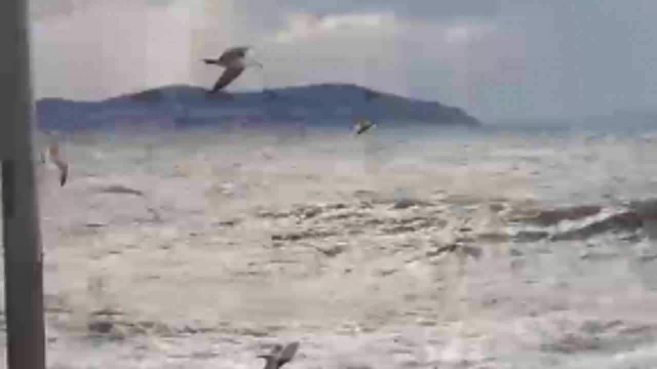 Kadıköy Caddebostan sahilinde lodosa karşı uçmaya çalışan martılar şiddetli rüzgarın etkisiyle zor anlar yaşadı. Rüzgara karşı kanat çırpan martılar...