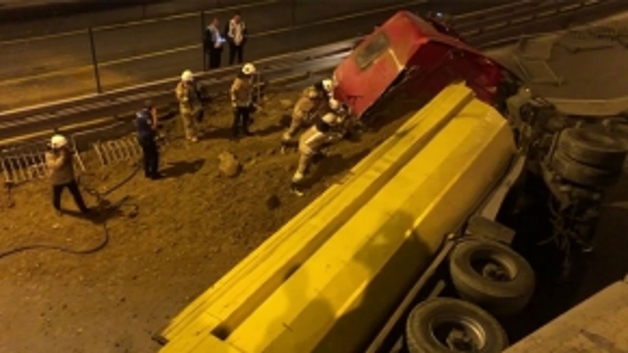 Kadıköy Fikirtepe Mahallesi, Yıldırım Sokak üzerinde hareket halinde olan hafriyat yüklü kamyon, freninin boşalmasının ardından kontrolden çıkıp 5 metrelik yükseklikten aşağıya devrildi.