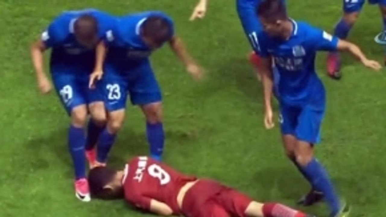 Brezilyalı oyuncu Oscar, Çin Süper Ligi ekiplerinden Shangai SIPG formasıyla çıktığı Guangzhou Evergrande karşılaşmasında iki kez rakibinin üzerine topu sertçe vurunca ortalık bir anda karıştı.