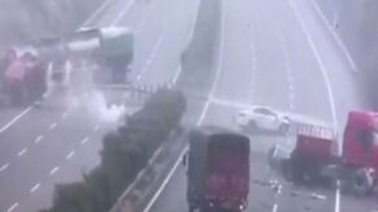 Çin’de kontrolden çıkan bir kamyon, hemen yan tarafında seyreden otomobile çarparak karşı şeride girdi. Otomobili metrelerce sürükleyen kamyona çarpmamak için manevra yapan bir tanker de önce yol kenarındaki bariyerlere çarptı...