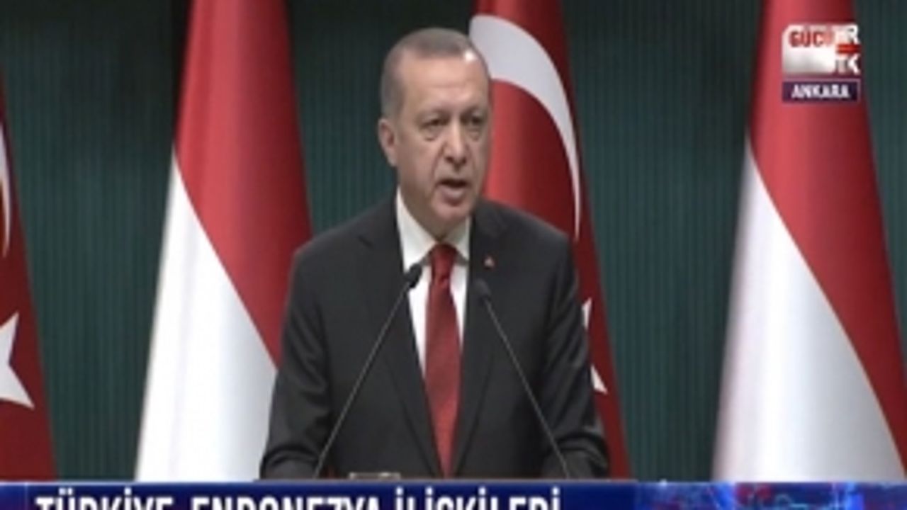 Cumhurbaşkanı Recep Tayyip Erdoğan, Türkiye'ye resmi ziyarette bulunan Endonezya Cumhurbaşkanı Joko Widodo ile yaptıkları görüşmenin ardından açıklamalarda bulundu. Cumhurbaşkanı Erdoğan'ın açıklamalardan öne çıkan kısımlar şunlar;