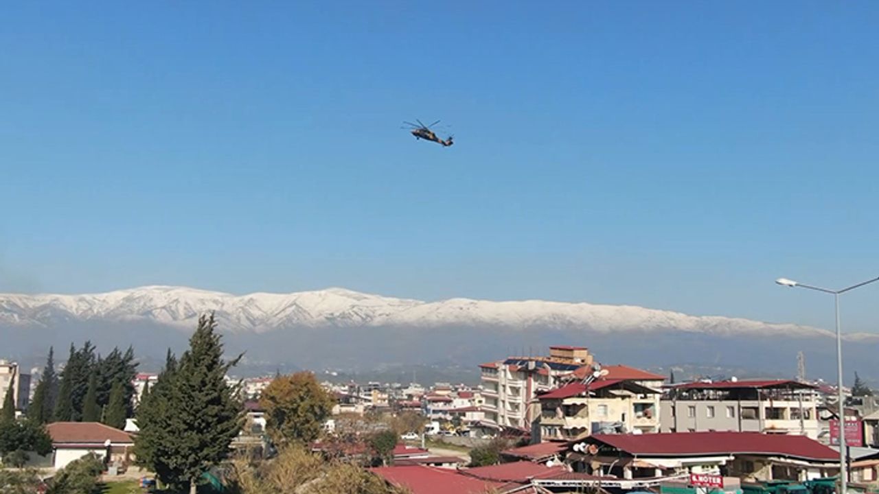 Kahramanmaraş merkezli 7.7 ve 7.6 büyüklüklerindeki depremlerin en fazla etkilediği kentlerden Hatay’a arama kurtarma personeli ve ihtiyaç malzemesi taşınması için askeri helikopterler seferber oldu.