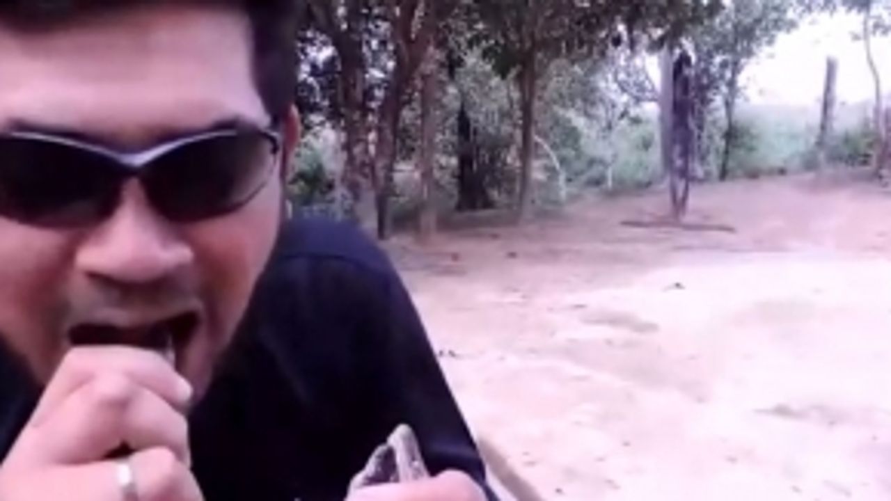 Dört tane kobra yılanını başından tutarak ağzına sokan adrenalin tutkunu adamın kameraya böyle yansımış. Yılanların zehirli yada zehirsiz olup olmadığı hakkında bilgi bulunmamaktadır.