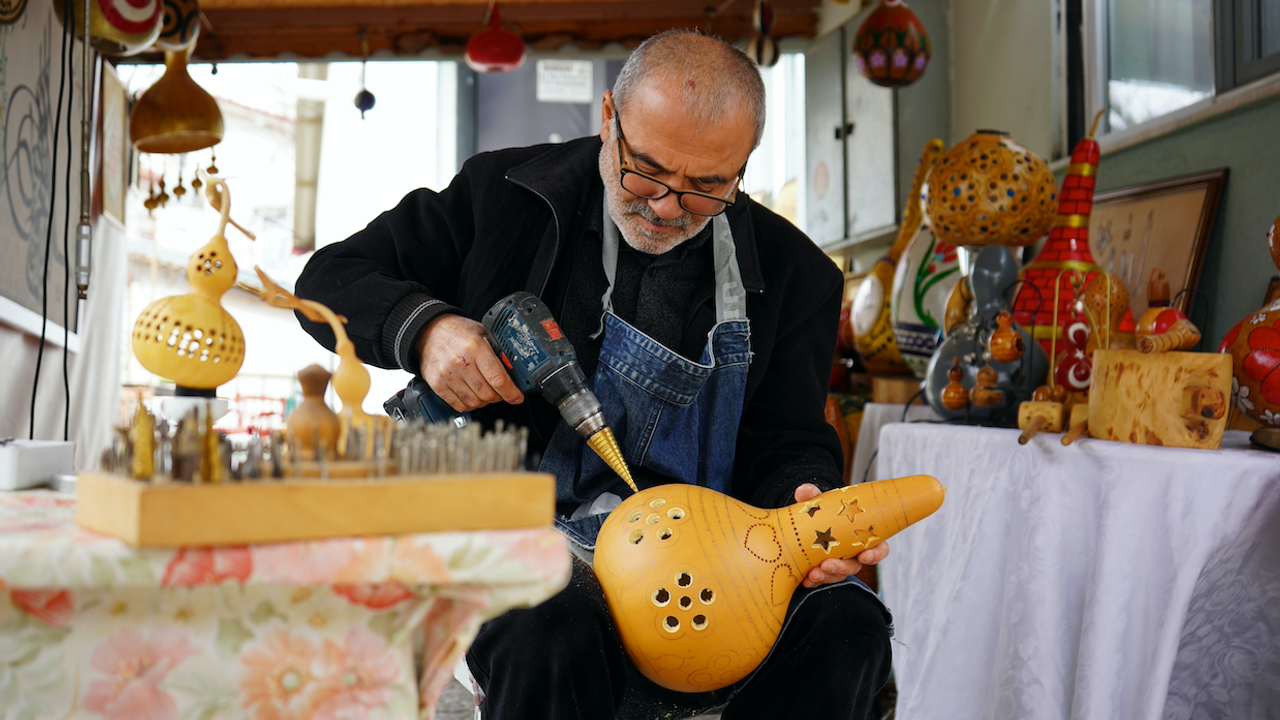 Emekli öğretmen su kabağına yaptığı sanatla hayat buldu!