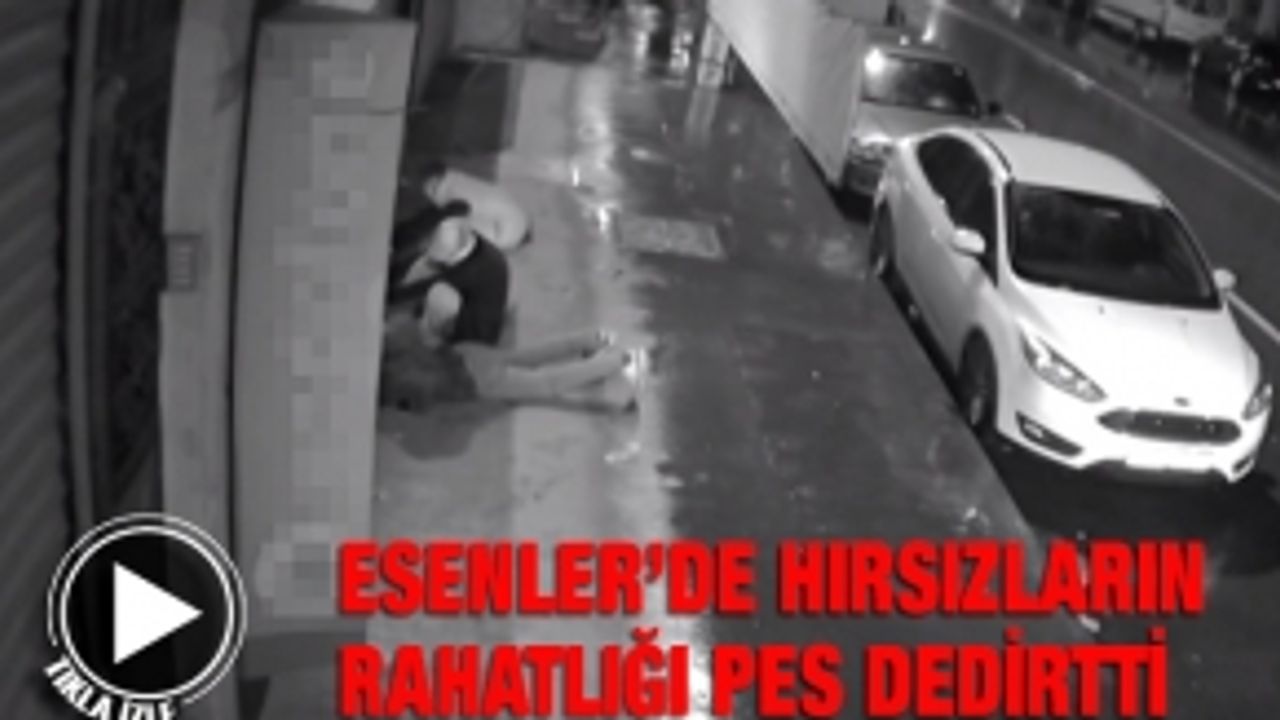 Esenler'de altı hırsız karakola 200 metre mesafede bulunan cep telefonu bayiini soydular. Hırsızlar polis otosunun geçişi sırasında araçların arkasına saklanırken, hırsızlık anları güvenlik kameralarına yansıdı.