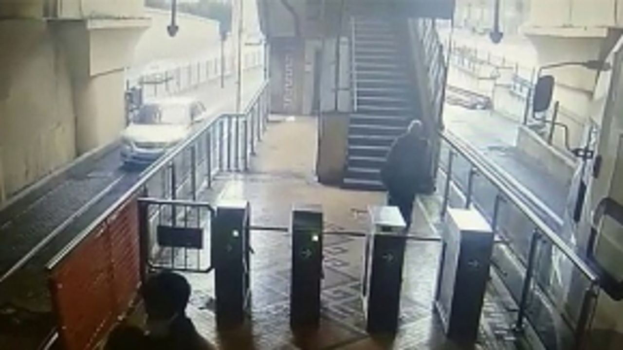 İstanbul Fatih'te yanlışlıkla tramvay yoluna giren sürücü, bir süre raylarda ilerledikten sonra mahsur kaldı. İstasyonda tramvay bekleyen vatandaşlar ise otomobili görünce...