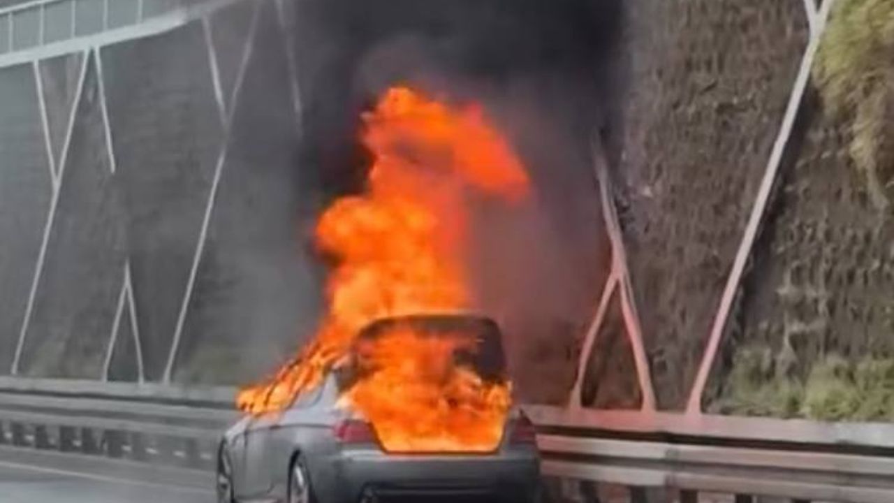 Fatih’te seyir halindeki otomobilde çıkan yangın itfaiye ekiplerince söndürüldü. Demir yığınına dönen aracın alev alev yandığı anlar diğer sürücüler tarafından cep telefonu kamerasıyla kaydedildi.