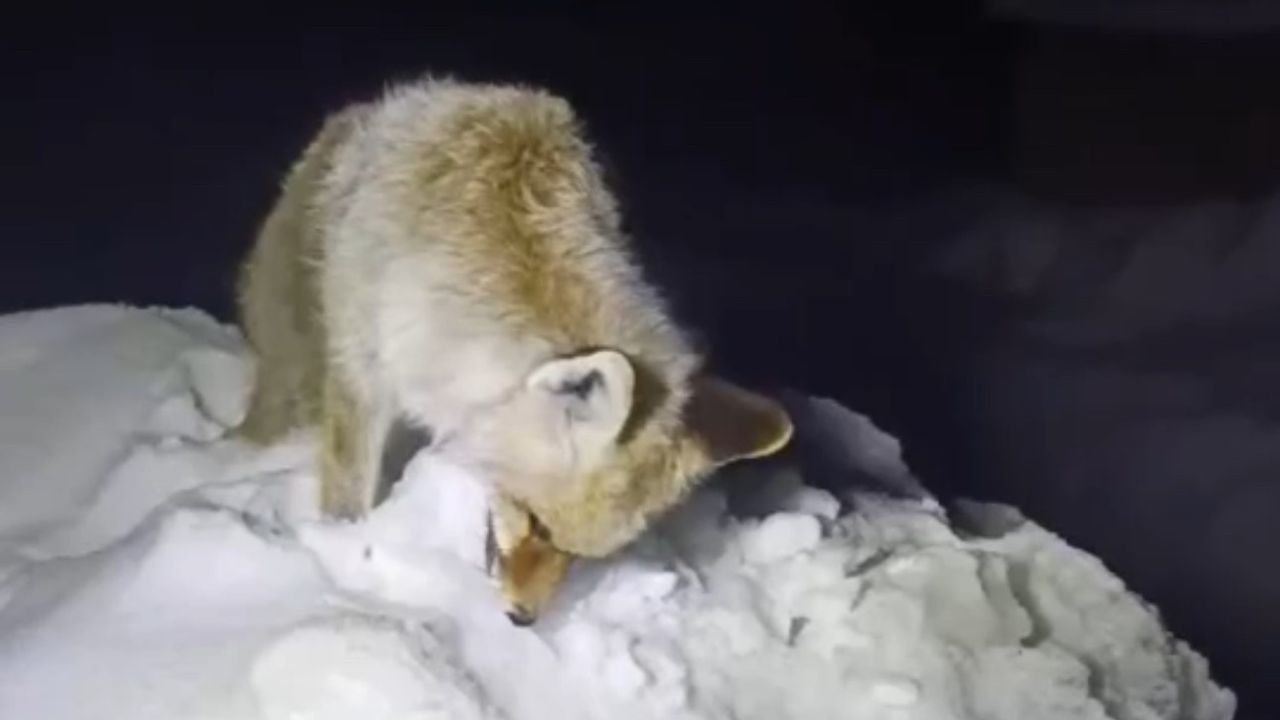 Hakkari'nin Yüksekova ilçesinde etkili olan dondurucu soğuklar nedeniyle yiyecek arayışındaki bir tilki, kar kütlesi üzerinde ayakta donmuş vaziyette bulundu.
