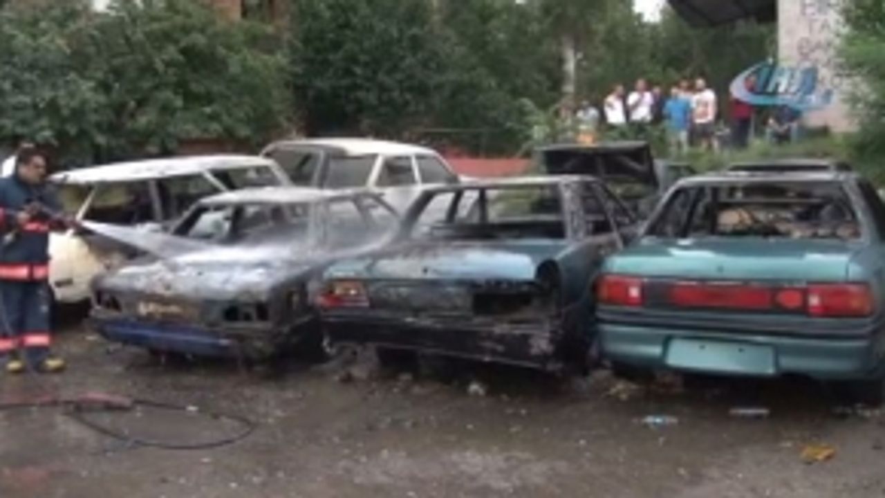 Güngören’de oto kaporta ve boya servisine ait bir otoparkta park halinde bulunan 6 otomobil alev alev yandı. Yanan otomobiller itfaiye ekipleri tarafından söndürüldü. Park halinde olan otomobillerin alev alev yanma anı...