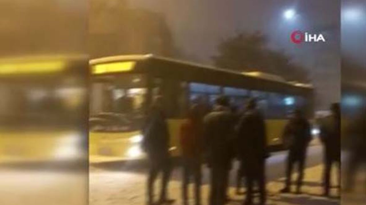 Güngören'de etkili olan kar yağışı nedeniyle İETT otobüsü yolda kaldı.