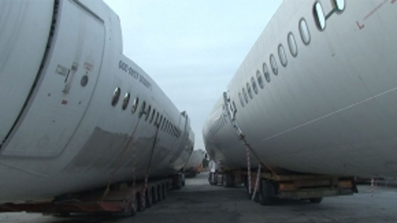Hadımköy’de tır garajında bekletilen hurda uçaklar, gece saatlerinde uzman ekipler tarafından TEM Otoyolu ile Ambarlı Limanı’na taşındı.