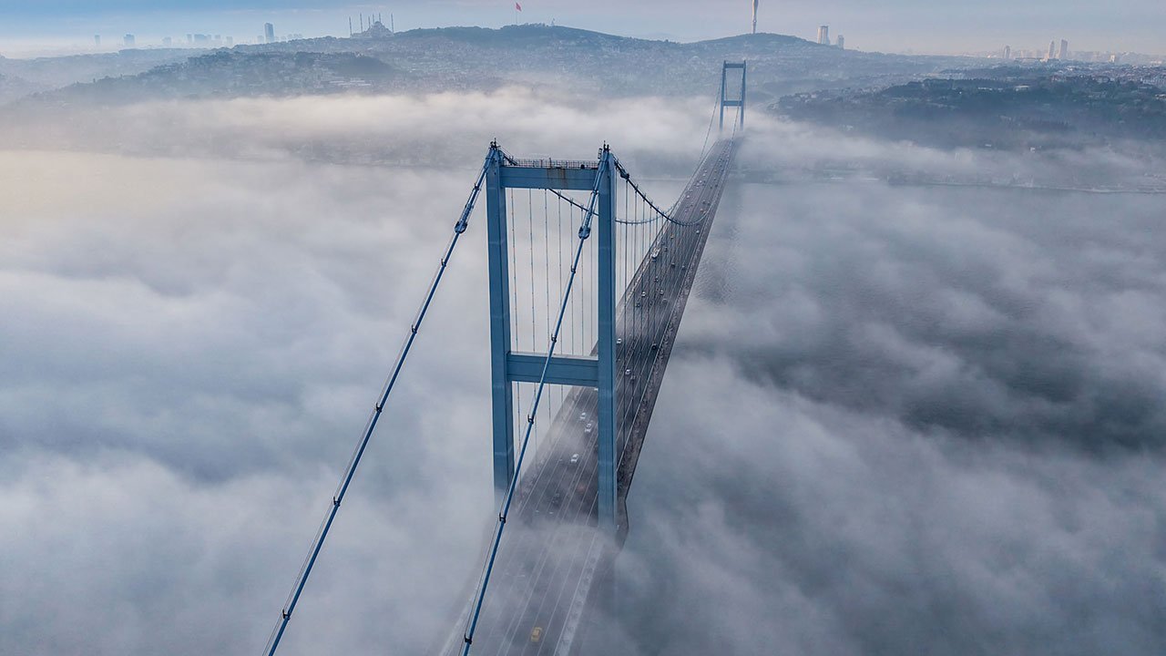 İstanbul’da sabah saatlerinde etkili olan yoğun sis, 15 Temmuz Şehitler Köprüsü üzerinde mest eden görüntüler oluşturdu.