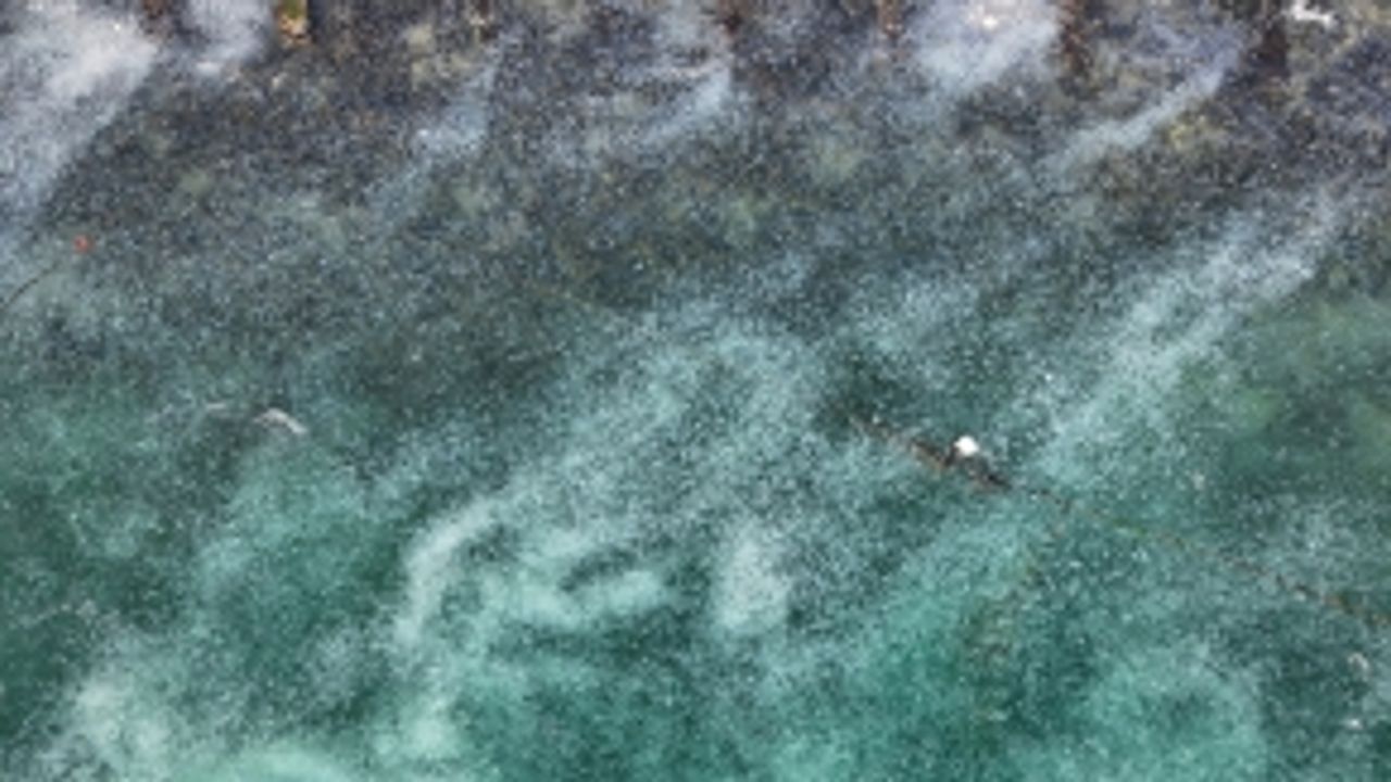Sarıyer sahilini beyaza bürüyen denizanaları havadan görüntülendi