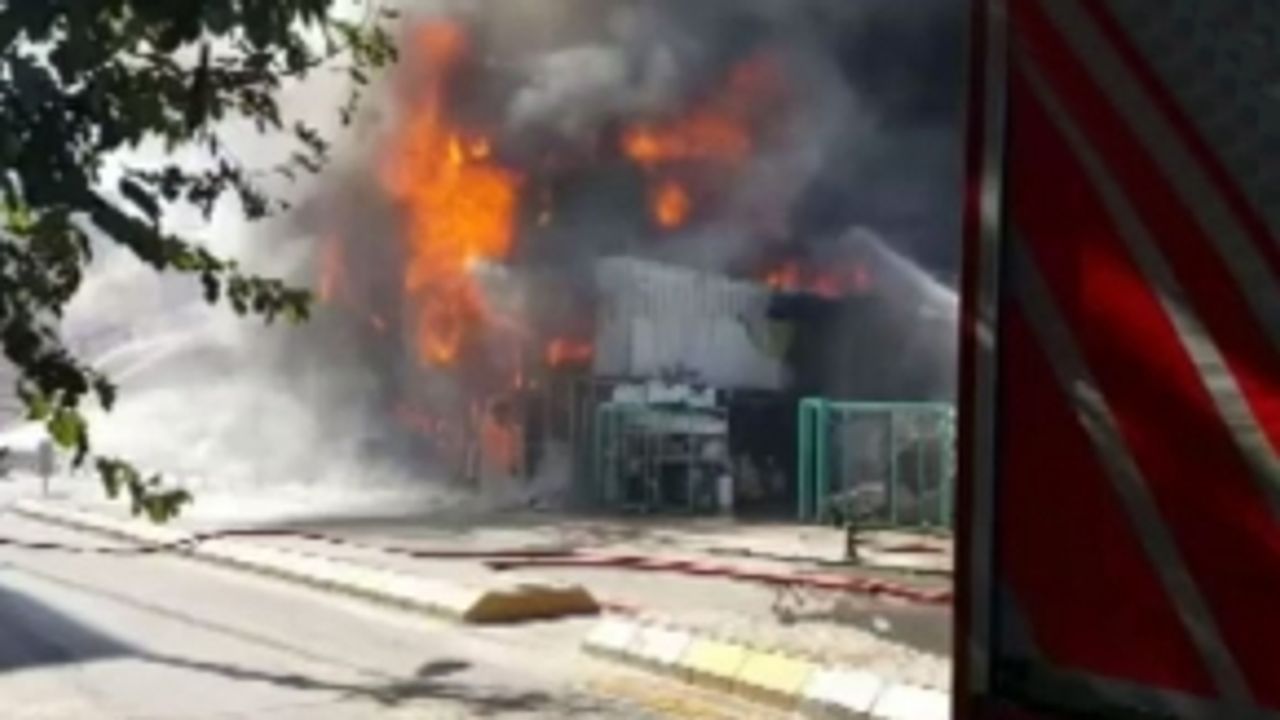 İstnabul Pendik'te iki katlı nalbur dükkanında yangın çıktı. Dükkan alev alev yanarken, yangına çok sayıda itfaiye ekibi müdahale ediyor.