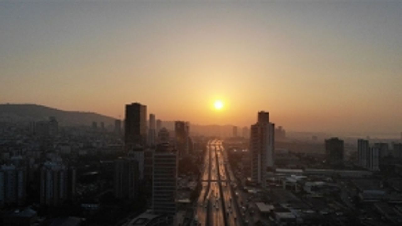İstanbul'da gün doğumuyla birlikte gökyüzü kızıla boyanırken, ortaya çıkan manzara mest etti. O anlar havadan görüntülendi.