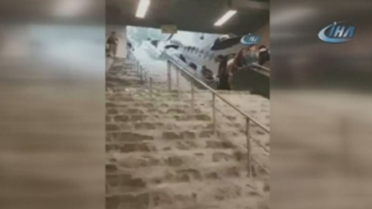 İstanbul'da etkili olan aşırı yağış nedeniyle Gayrettepe Metro İstasyonu sular altında kaldı. Merdivenlerden akan yağmur suları, istasyonda bulunan vatandaşlara zor anlar yaşattı.