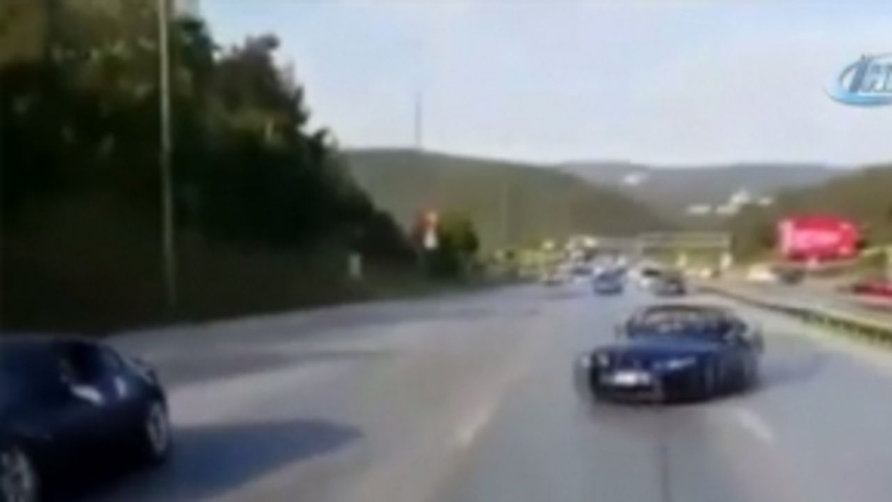 İstanbul Şile Otoyolu'nda ‘Drift’ yaparak ilerleyen maganda, direksiyon hakimiyetini kaybederek bariyerlere çarptı. Yaşanan kaza anı ise önünde seyreden başka bir otomobildeki vatandaş tarafından saniye saniye kaydedildi.