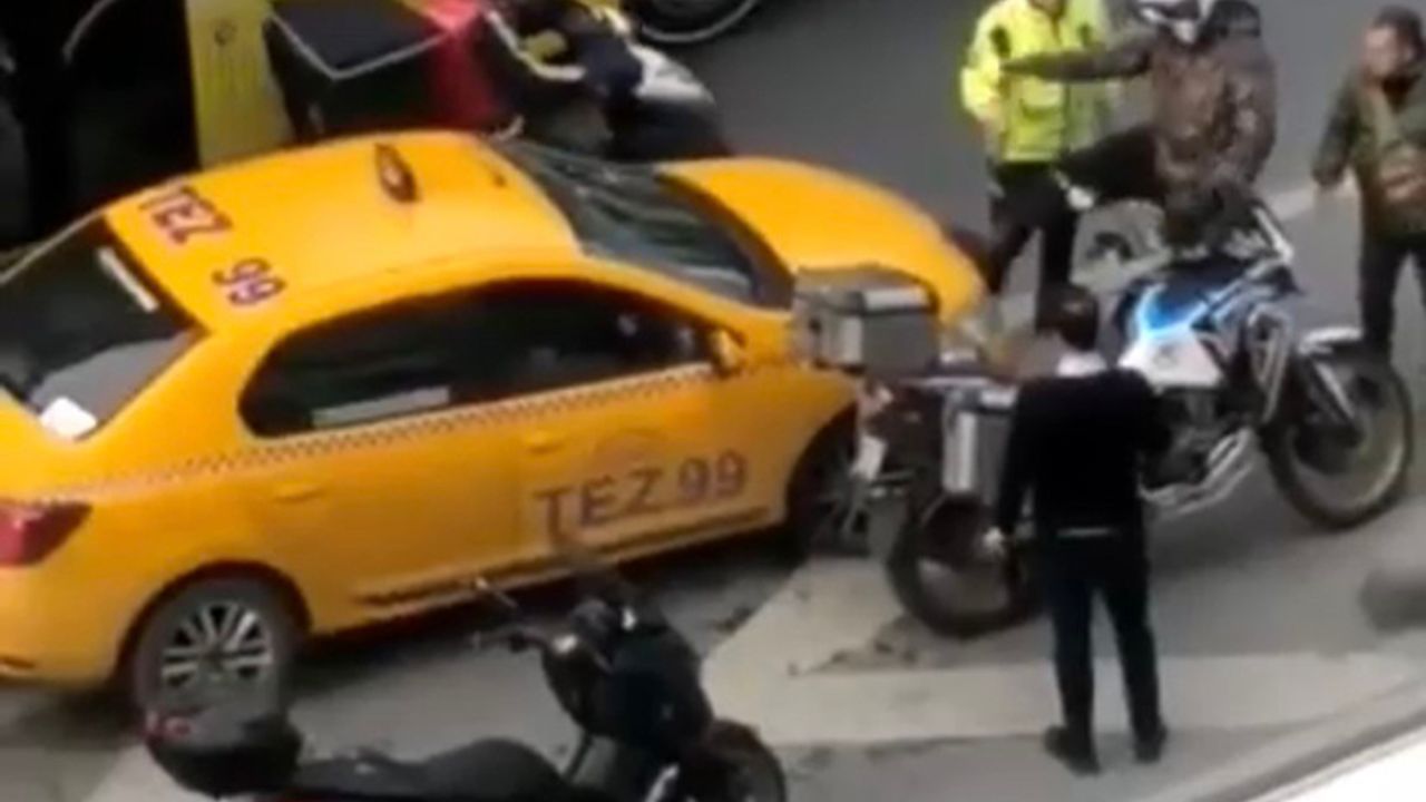 Şişli’de taksici ile motosiklet sürücüsü arasında yol verme nedeniyle kavga çıktı