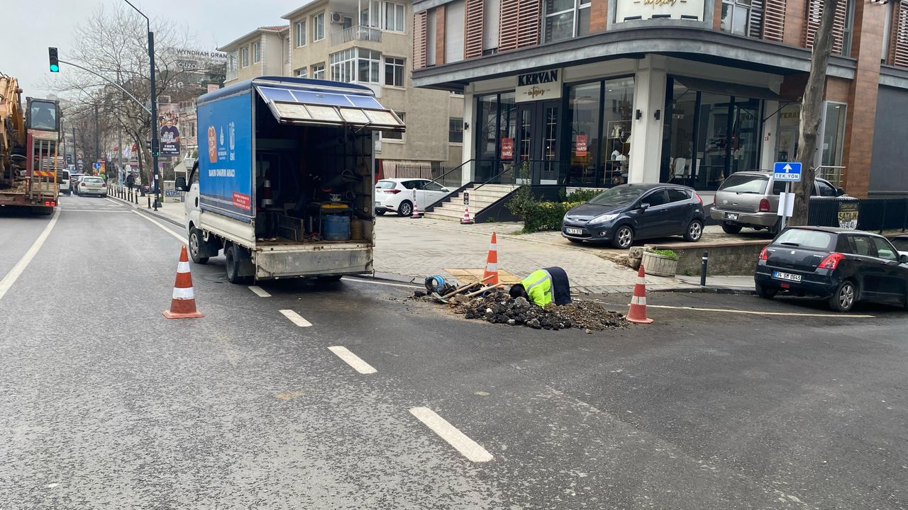Kadıköy'de su borusu patladı, tazyikli su metrelerce yükseğe fışkırdı