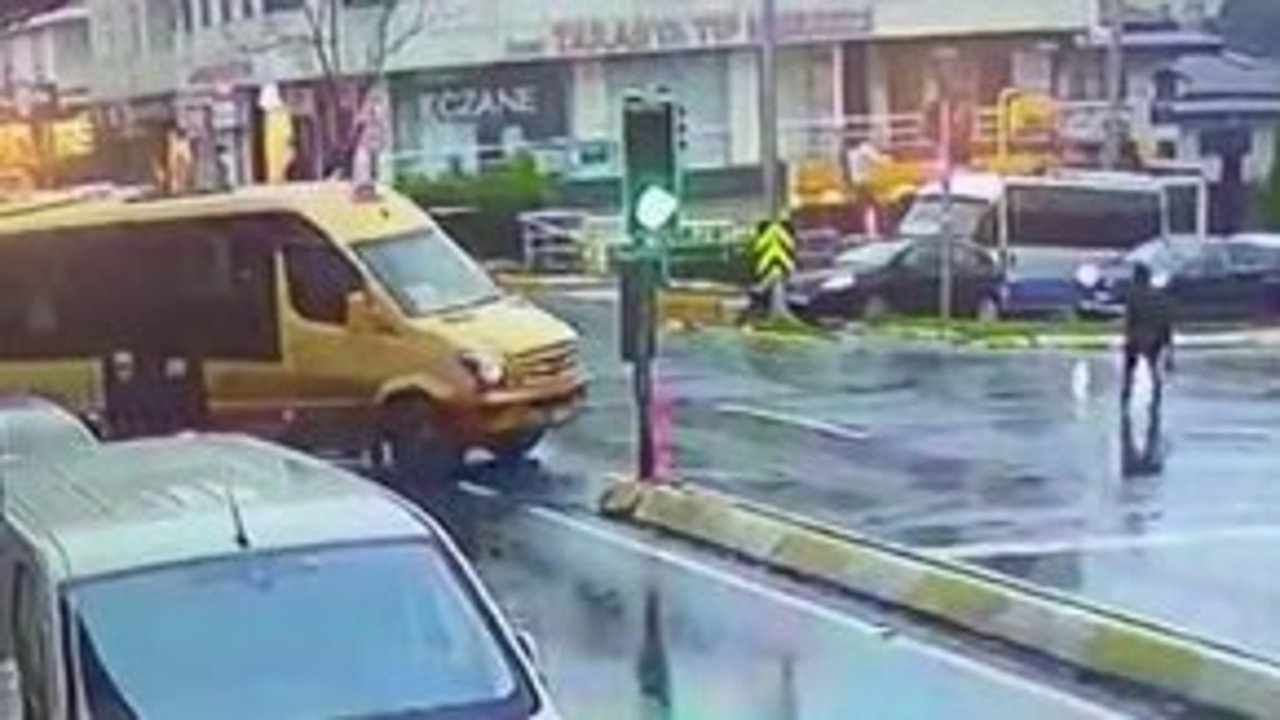 Sarıyer’de yasak yerden dönüş yapan minibüs sürücüsü, yolun karşısına yürüyen kadına çarptı. Minibüsün altında metrelerce sürüklenen talihsiz kadının kulağı koptu. Dehşet anları kameralara yansırken, ameliyata alınan kadının kulağının dikildiği öğrenildi.