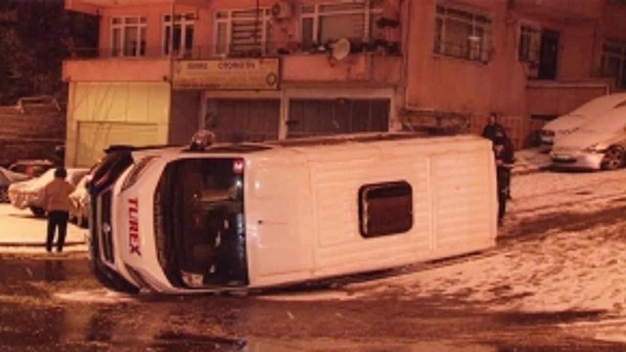 Üsküdar'da servis aracı yoğun kar yağışının olduğu saatlerde yokuş aşağı inerken kontrolünü kaybederek önce bir evin bahçe kapısına ardından bir otomobile vurarak yan yattı. Yan yatan servis aracında kimse yara...
