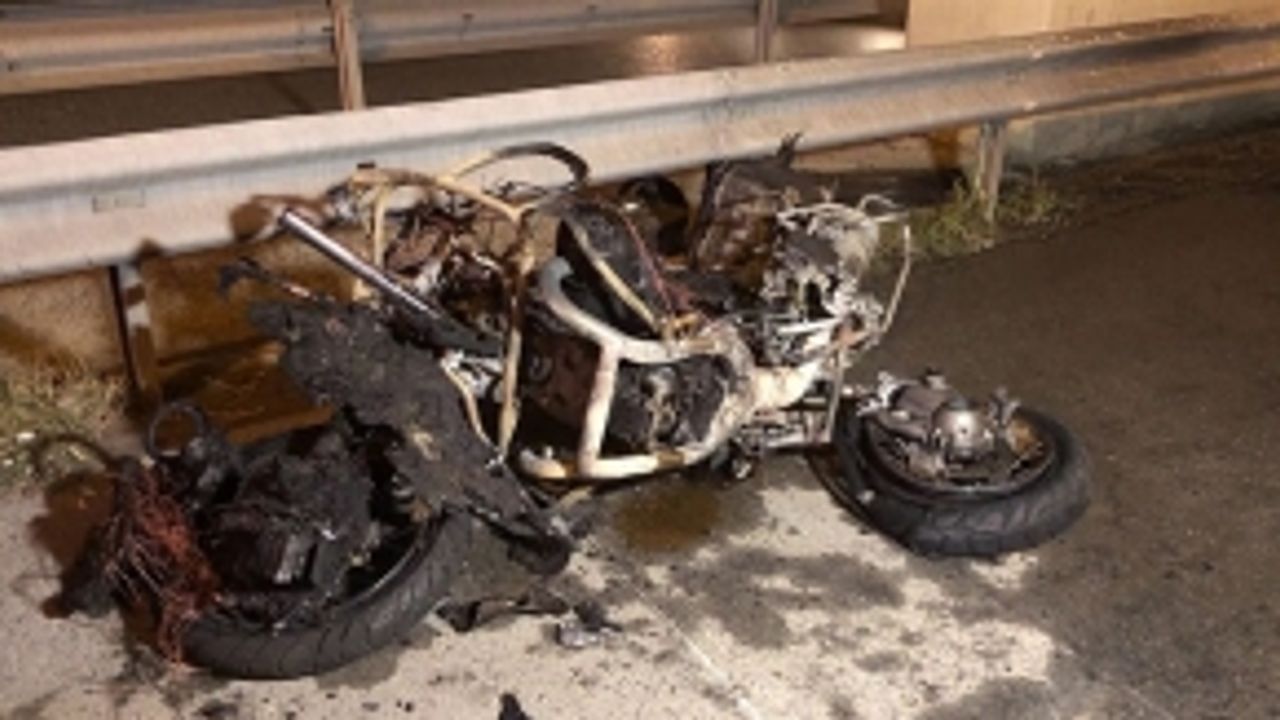 Kamyonete arkadan çarpıp alev alan motosiklet kullanılamaz hale geldi