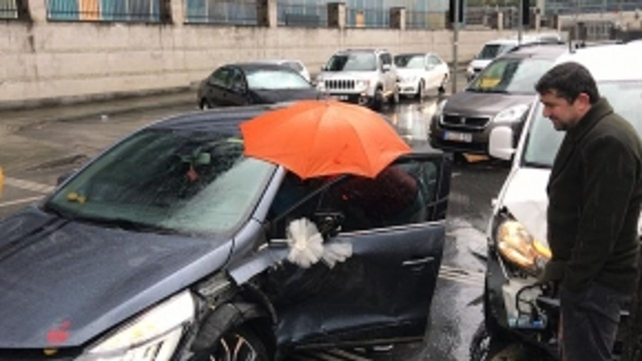 Kağıthane’de yağış nedeniyle kayganlaşan yolda kontrolden çıkan hafif ticari araç, aynı istikamette seyreden otomobile yandan çarptı. Kazada yaralanan otomobil sürücüsüne vatandaşlar şemsiyeyle koruma yaptı.