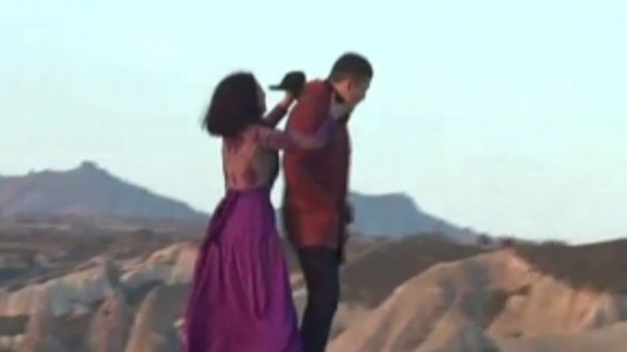 Nevşehir’in Göreme beldesindeki Aşıklar Tepesi'nde Kırgız genç kızın erkek arkadaşını dakikalarca tokatlaması ilginç görüntüler oluşturdu.