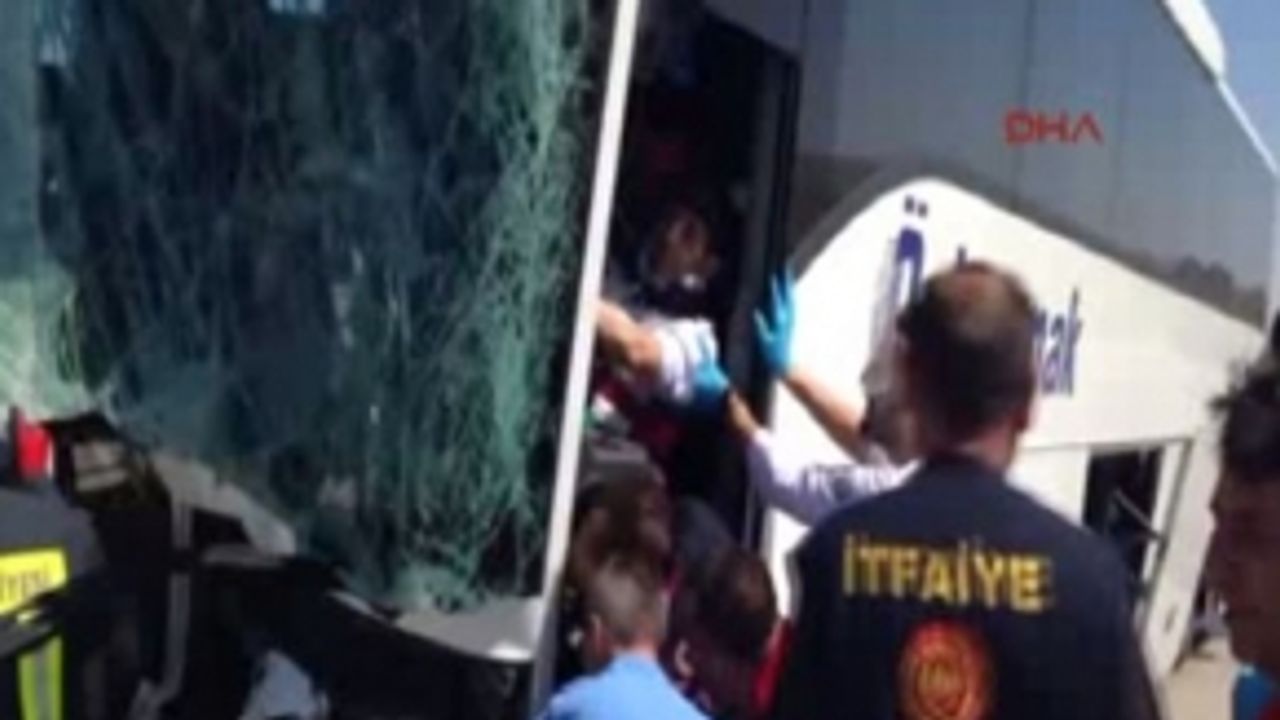 Konya'nın Kulu İlçesi yakınlarında önünde seyreden iş makinesine çarpan yolcu otobüsü yolun ortasındaki demir bariyerlere çarparak durabildi. Kaza sonrası araç sürücüleri ile birlikte 12 kişi yaralandı.