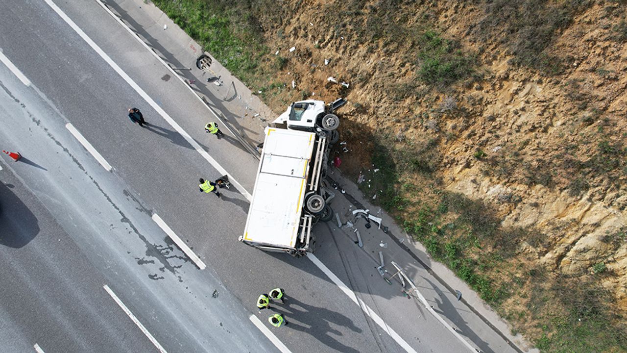 Kazada E.A. yönetimindeki kamyonun sürücüsü araçta sıkıştı. Olay yerine sevk edilen itfaiye ekipleri, yaralı sürücüyü kısa sürede sıkıştığı yerden çıkararak sağlık ekiplerine teslim etti. Yaralı sürücü ambulansla hastaneye sevk edilirken, otoyolda bir şerit bir süre trafiğe kapatıldı.
