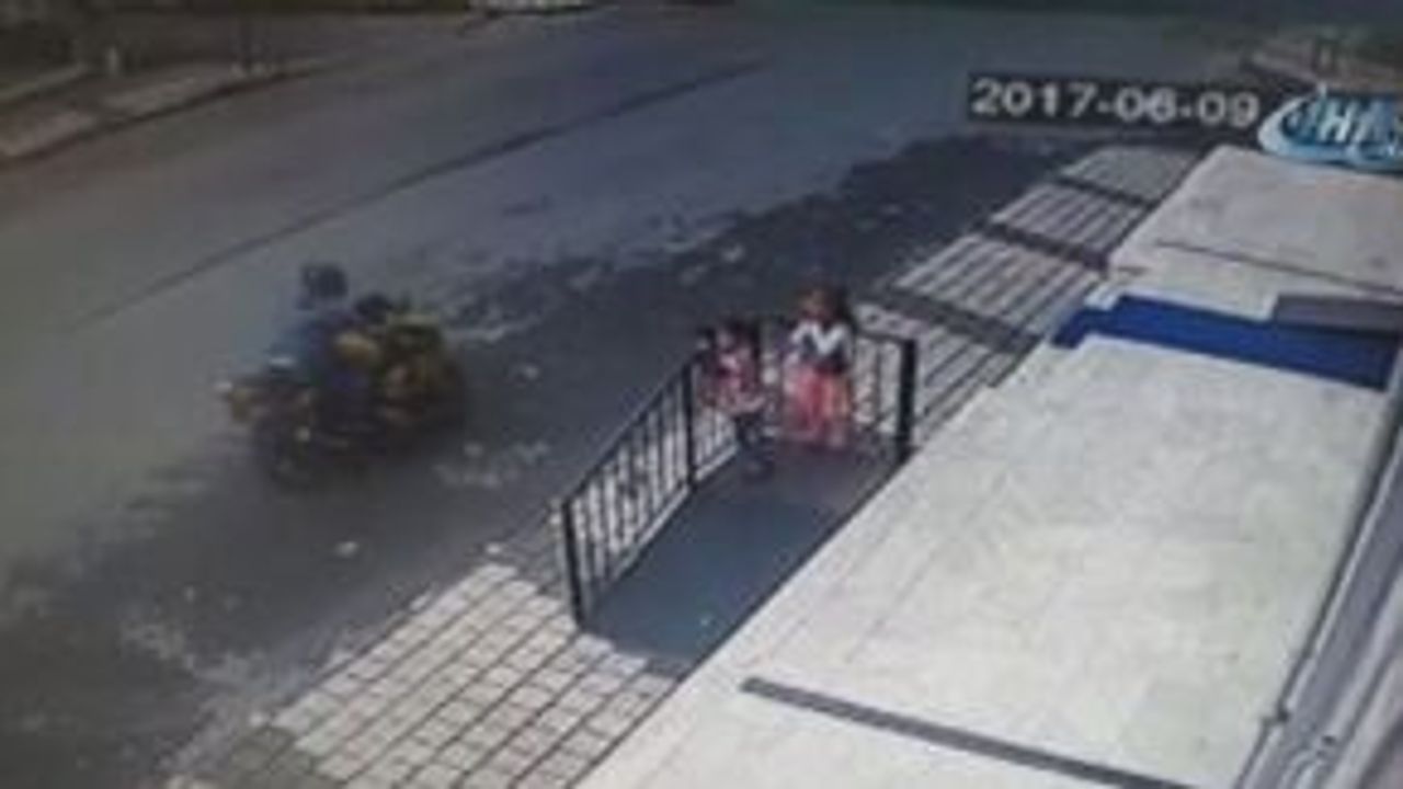 Sancaktepe’de caddede oyun oynayan çocuk yolun karşısına geçmeğe çalışırken o esnada süratle gelen motosiklet çarptı. Çarpmanın etkisiyle çocuk savrulurken, motosiklet sürücüsünün kaçtığı o anlar güvenlik kameralarına yansıdı.