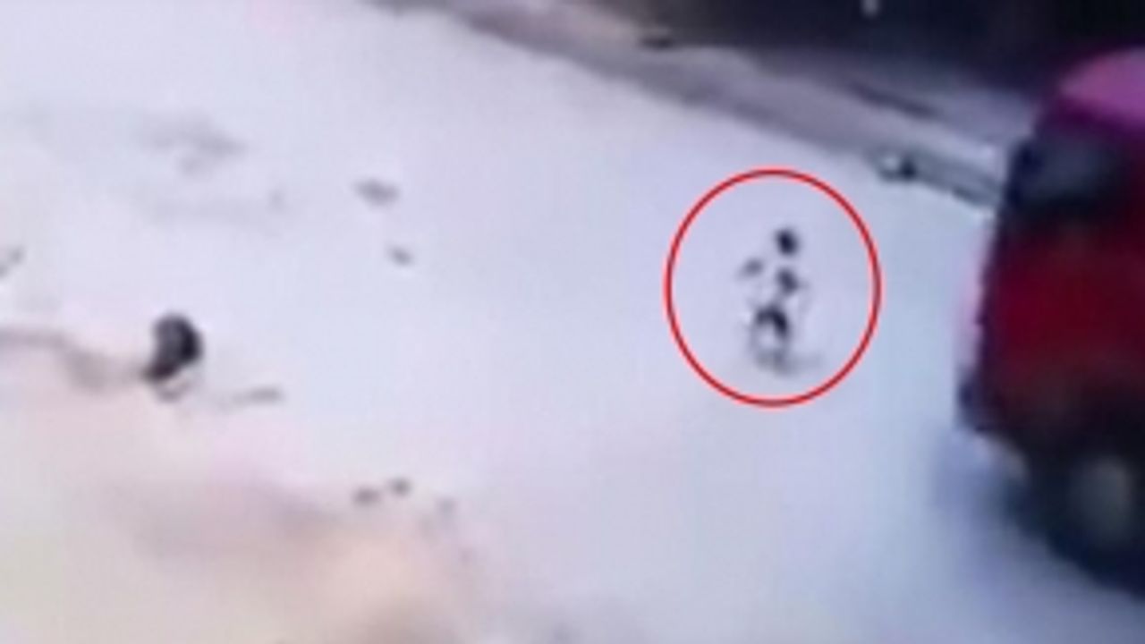Güvenlik kamerasına yansıyan görüntülerde, küçük çocuğun yoldan karşıya geçmeye çalıştığı görülüyor. Bu sırada yolda seyreden bir kamyon çocuğa çarpıyor. Büyük panik yaşayan kamyon şoförü çocuğu aracın altından çıkarırken, şanslı çocuk...