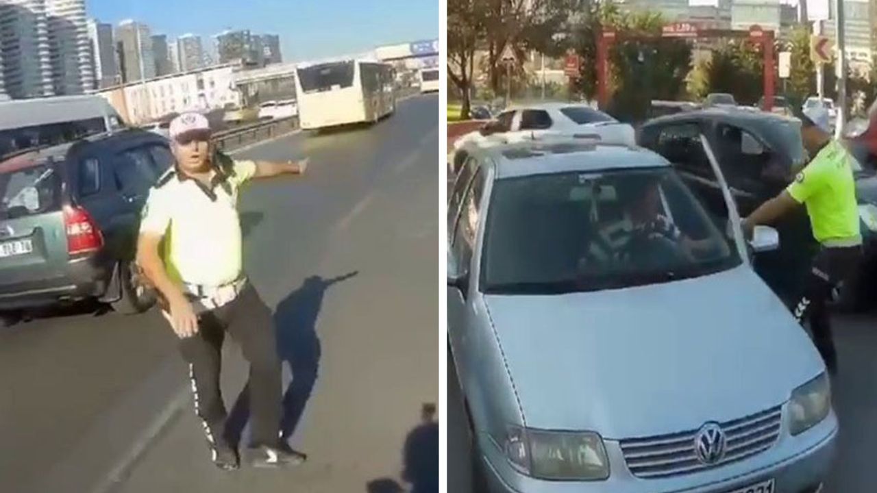 Muhtar olduğunu iddia eden şahıs motosiklet sürücüsüyle tartıştı. Motosiklet sürücüsü durumu trafik polisine bildirdi. Yoldan geçen başka bir motosiklet sürücüsünü durduran trafik polisi, muhtarı takip ederek yakaladı. O anlar kask kamerasına yansıdı.