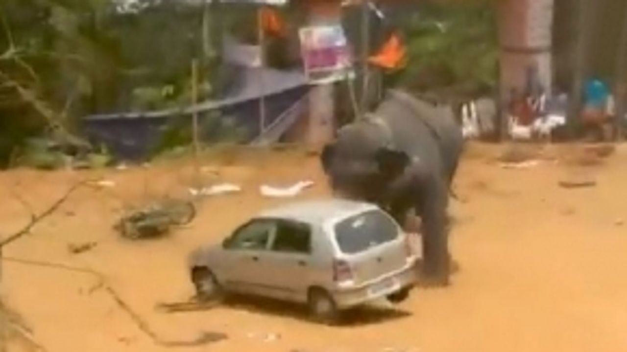 Neye öfkelendiği bilinmeyen fil, festival alanını birbirine kattı. Önüne ne çıkarsa yıkıp dökmeye başlayan fili kimse sakinleştirmedi.