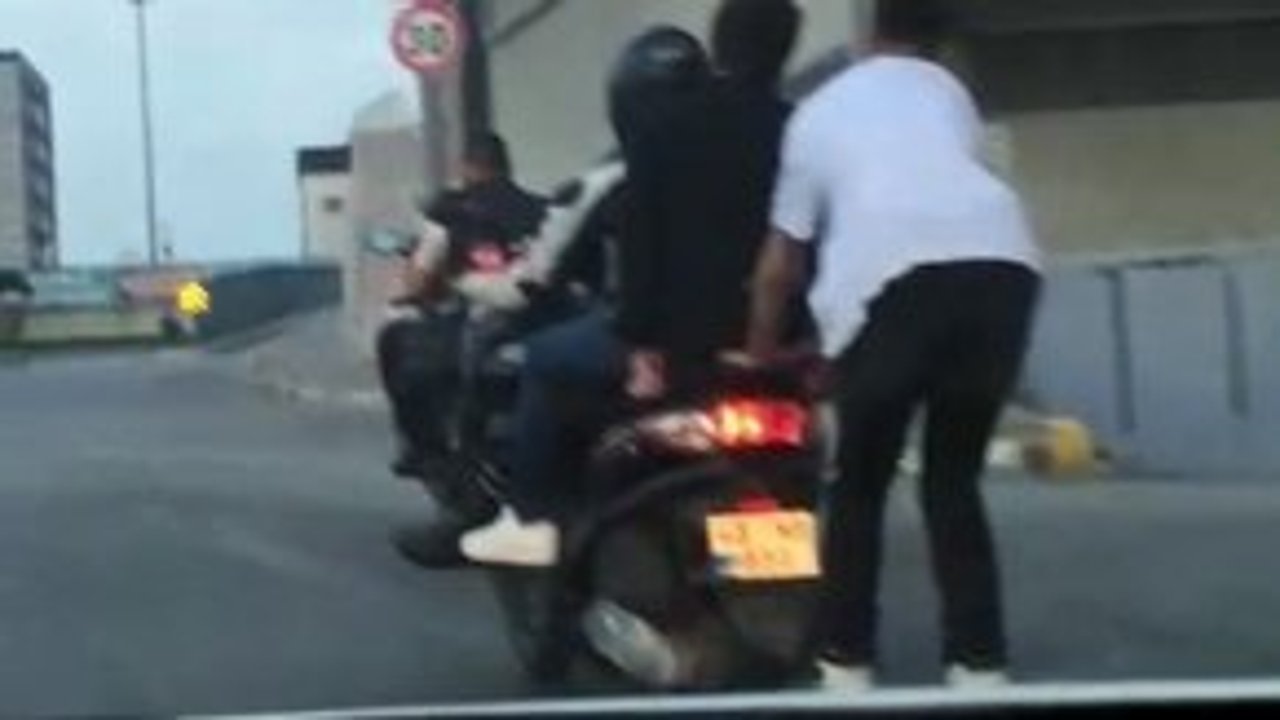 Motosikletlilerin arkasına takılan patenli gençler yürekleri ağza getirdi