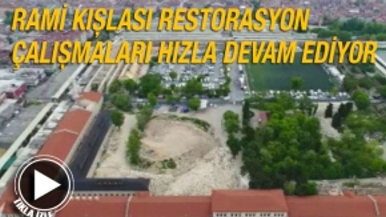 Eyüpsultan’daki tarihi Rami Kışlası’nın restorasyon çalışmaları tüm hızıyla devam ediyor. Havadan çekilen görüntülerde işçilerin çatı iskeletinin montajını yaptığı görülüyor.
