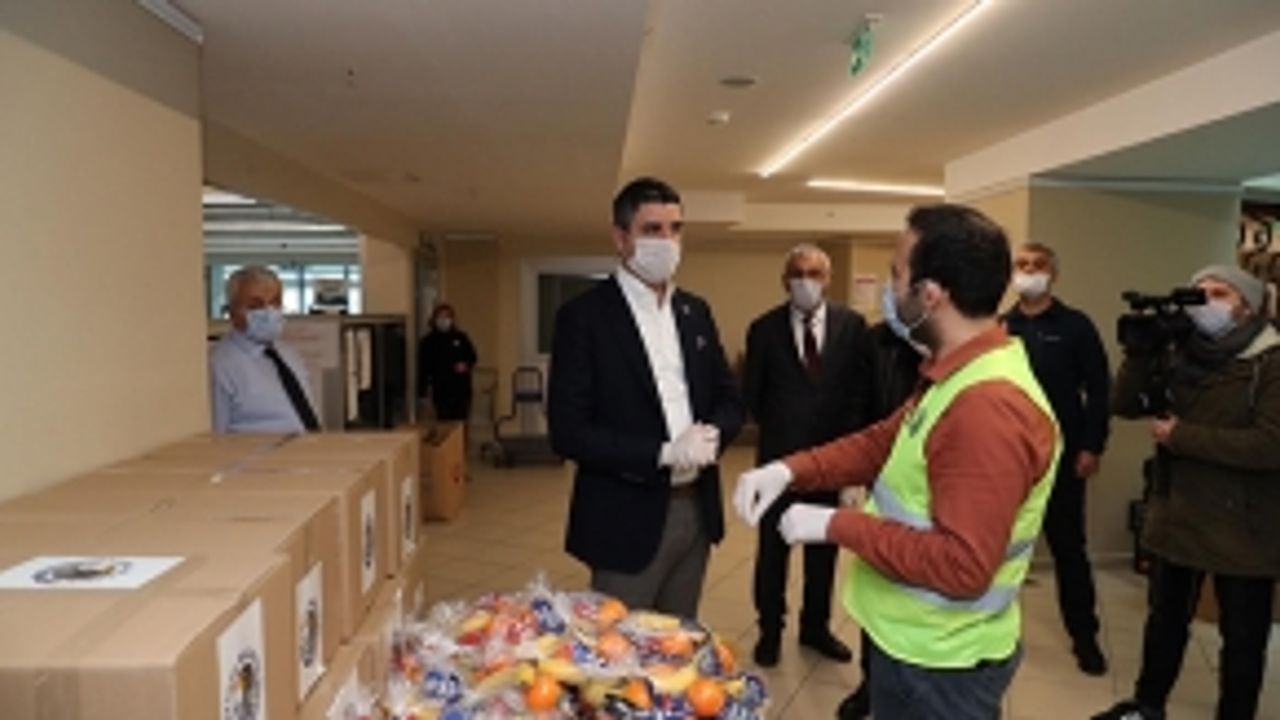 Kartal'da, korona virüs salgını nedeniyle mücadele veren sağlık çalışanlarına destek olmak için çikolata meyve ikramında bulunuldu.