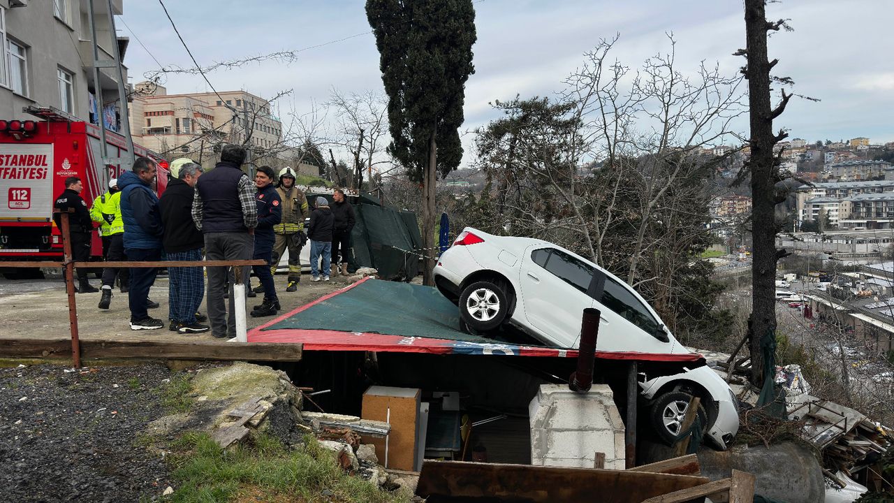 Sarıyer’de ilginç kaza: Vitesi karıştıran sürücü kamelyaya uçtu