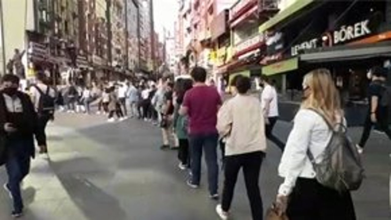 İstanbul Şirinevler'de sabah saatlerinde otobüs bekleyen yolcuların oluşturduğu metrelerce kuyruk kameralara yansıdı.