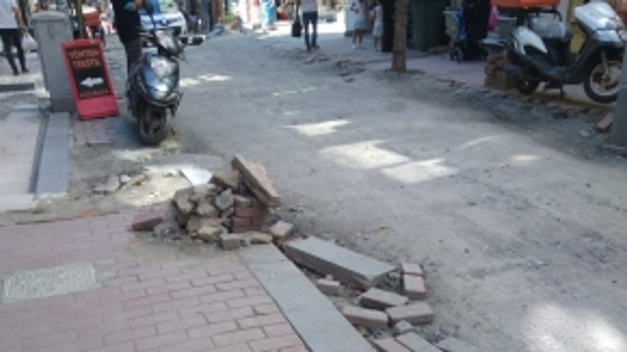 Kaldırıma yığılan taş, toprak ve çukurlardan yürümekte sıkıntı çeken vatandaşlar hiçbir yetkilinin bu durumla ilgilenmediğini iddia etti